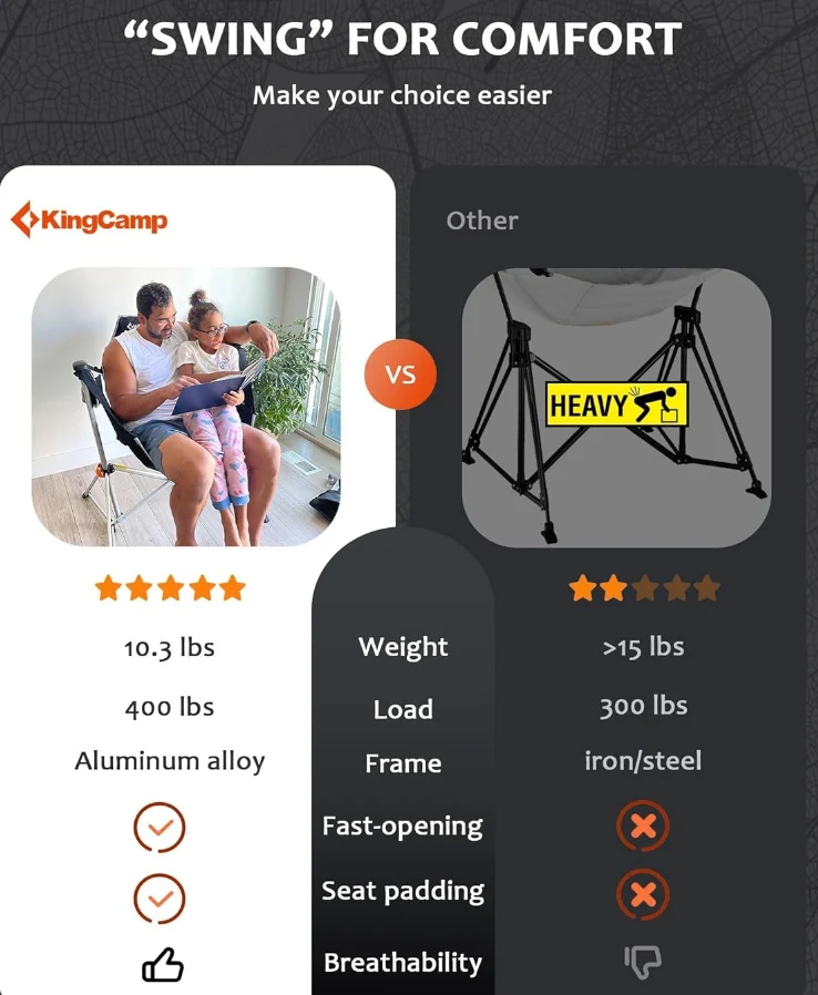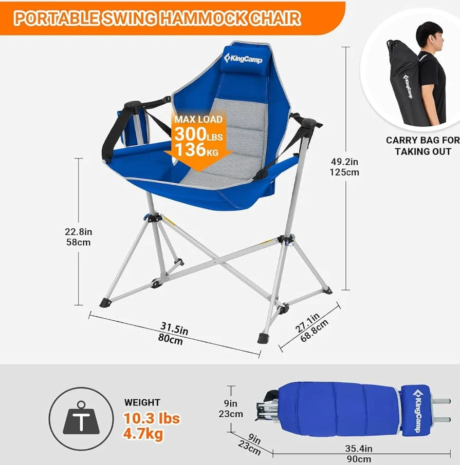 Úti tjaldstæði stól er 37,8 "x27.1" x49.2 ", þú ert með rúmgott sætissvæði til að sveiflast um óheft og hár bakstoð getur að fullu stutt bakið á þér. fætur frjálslega.