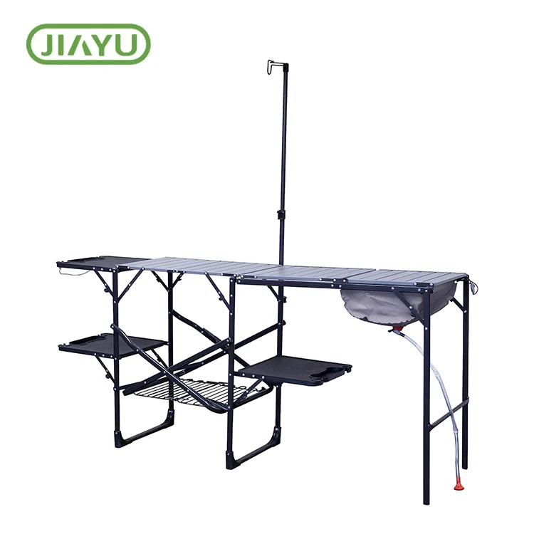 Færanlegt samanbrjótanlegt ál tjaldstæði. Gerðu máltíðina og renndu henni niður í flytjanlega, samsniðna hönnun þökk sé grannri tækni. Auðveldlega flytja borðið með innbyggðu burðarhandfanginu. Zhejiang Jiayu Outdoor Products Co., Ltd., notum okkar örugglega búðir á borðplötunni þökk sé sterkri, hitaþolinni álhönnun. Vinsæl notkun felur í sér snillingarstöð, eldhús á tjaldstæðinu, lautarferðarborði og hreinsunarstaður-þetta borð er fullkomið fyrir öll margnota tilefni.