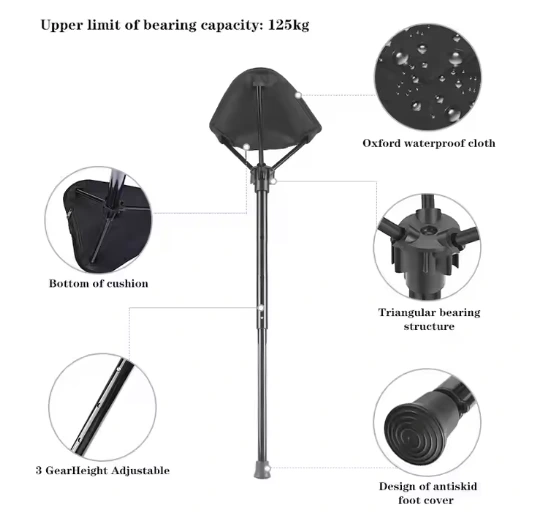 Fellulegur ferðastóll, kláraður með tvöfalt lag Oxford á þrífótarsætinu, endingargóðari og stöðugri, þessar þrífótarbúðir fyrir fullorðna 300 £ passa stór og hávaxinn einstaklingur til að njóta þægilegrar upplifunar.