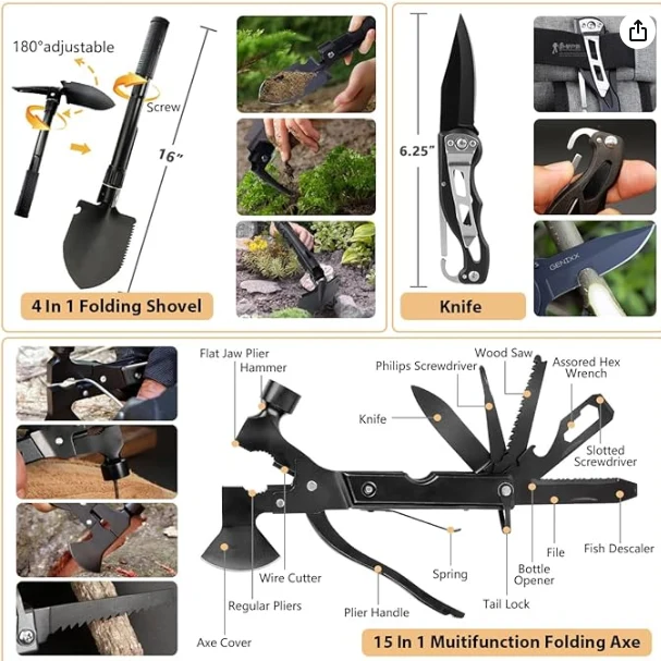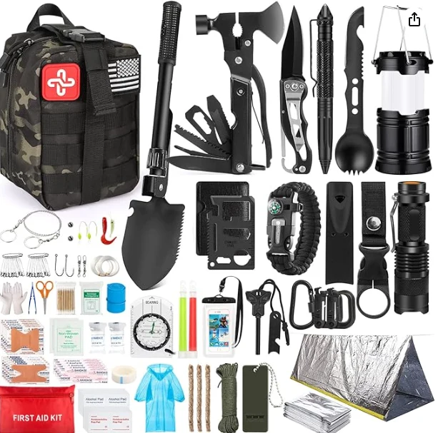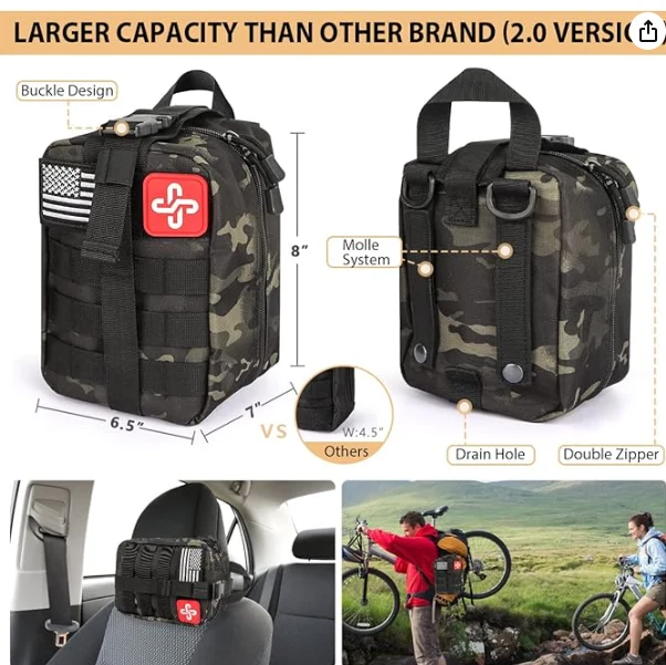 Molle Outdoor skyndihjálp poki inniheldur samtals 250 stk fjölnota lifunartæki. Það inniheldur vinsælustu lifunarbúnað og verkfæri, einnig skyndihjálparbúnað sem nóg til að meðhöndla fjölskyldu eða vinahóp við neyðaraðstæður.