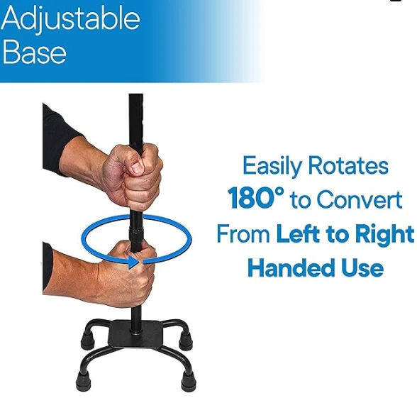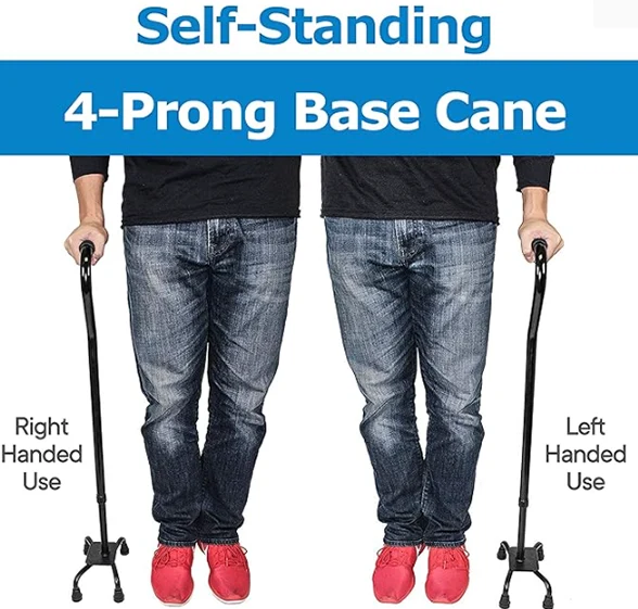 Gamall maður lækna reyr, hver prong er þakinn andstæðingur renni gúmmí reyrstopp fyrir auka stöðugleika og öryggi. Quad stöðin gerir það að sjálfstætt standandi reyr sem útrýma að falla eða falla á gólfið. Fullkomið fyrir skurðaðgerð þegar þú getur ekki beygt eða náð.