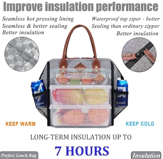 Úti á álpappír kælir poki. Löng einangrun - Vegna einangruðs fóðurs og topp vatnsheldur rennilásar hefur þessi einangraði hádegismatskassi frábæran þéttingu og hann er bólstraður. Tími þess að halda mat og drykkjum köldum/hlýjum í 7 klukkustundirzhejiang Jiayu Outdoor Products Co., Ltd. Hvort sem það er í vinnunni, ferðast eða njóta útivistar, eru vörur okkar hönnuð til að auka matarupplifun þína, gera alla máltíð að gleði.