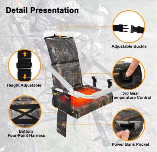 Útiveiðihitaður stól, býður upp á bæði styrk og þægindi og hannaður til að standast hrikalegt útivistaraðstæður en veita sterkan sætisstuðning, tryggja þægilegar veiðar í klukkustundir