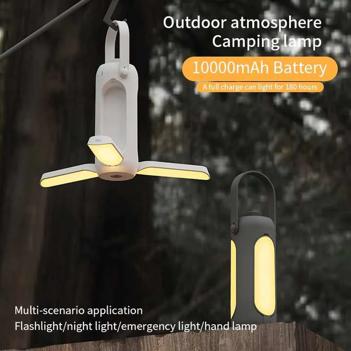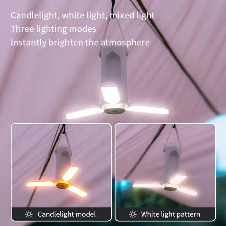 Portable USB Camp Light, notaðu innbyggða handfangið ofan á til að bera eða hengja léttu luktina, eða fjarlægja dreifarann og nota innfellda botnkrókinn til að hengja ljóskerið á hvolf til að lýsa umfangsmeiri svæði