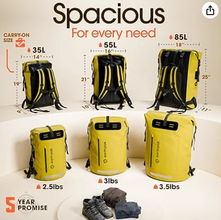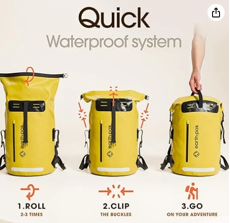 Vatnsheldur þurr bakpoki duffelpoki, 100% vatnsheldur til að tryggja að gírinn haldist alveg þurrt meðan þú ferð, kajak, hjólreiðar, pendlar, tjaldstæði og veiðar