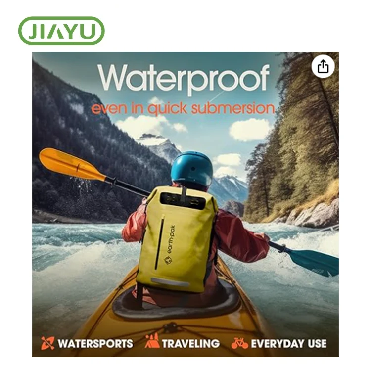 Vatnsheldur þurr bakpoki duffelpokinn. Stefinn með vasa bæði að innan og utan pokans. Stór skvettaþétt rennilás að utan til að fá skjótan grip og fara hluti, og innbyggður rennilás, möskvahólf og lykilhringur að innan. Zhejiang Jiayu Outdoor Products Co., Ltd. samningur og léttur til að auðvelda burðarefni á flugvéla og rúllu topp lokun veitir fullkomna vernd meðan á ferðalögum stendur. Þægilegir D-hringir sem fylgja báðum öxlböndum og lykkju í molle kerfinu veita báðir akkeripunkta til að festa sig á meðan bátar eða hjólreiðar eru.